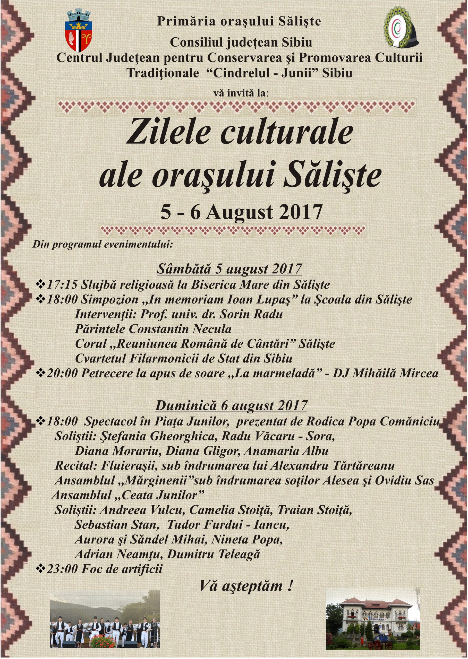 Avem bucuria să vă invităm la Zilele culturale ale orașului Săliște, 2017.